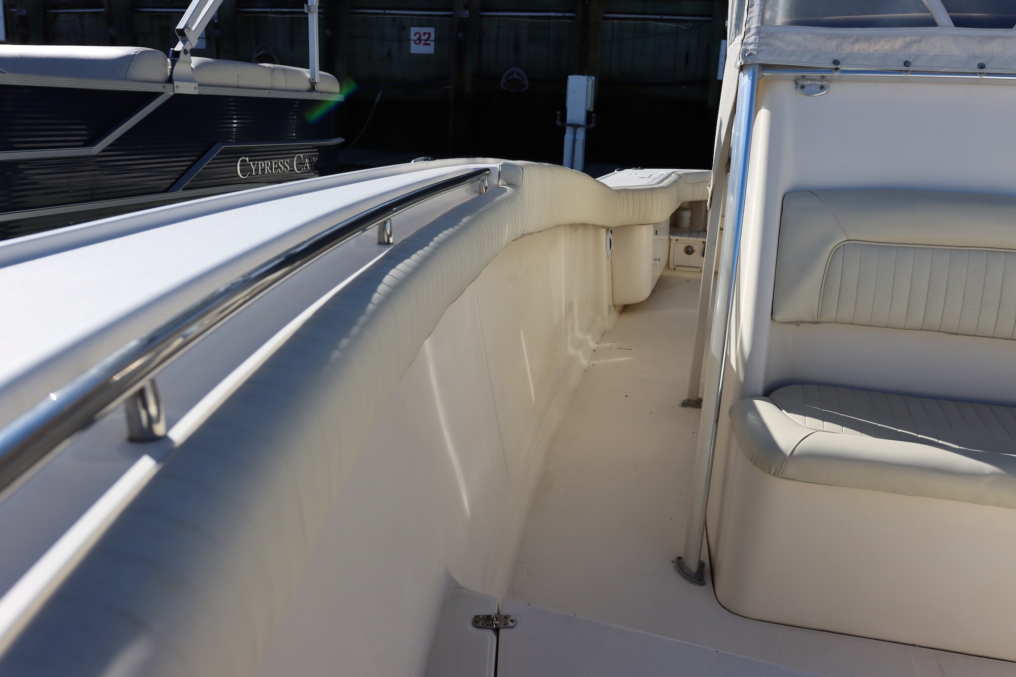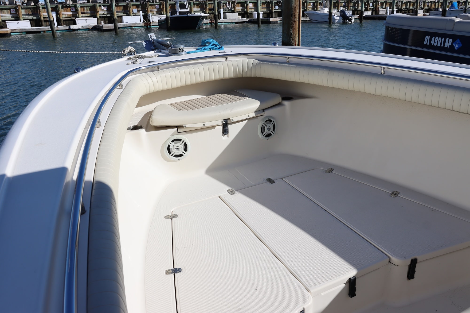 Not something you see every day. Original owner and re-powered with twin Yamaha 150s (just 65 hours). The factory warranty runs through 3/29/29 and is fully transferable. Great layout for fishing but is just as comfortable for a relaxing cruise. Ready to turn the key and head out.
